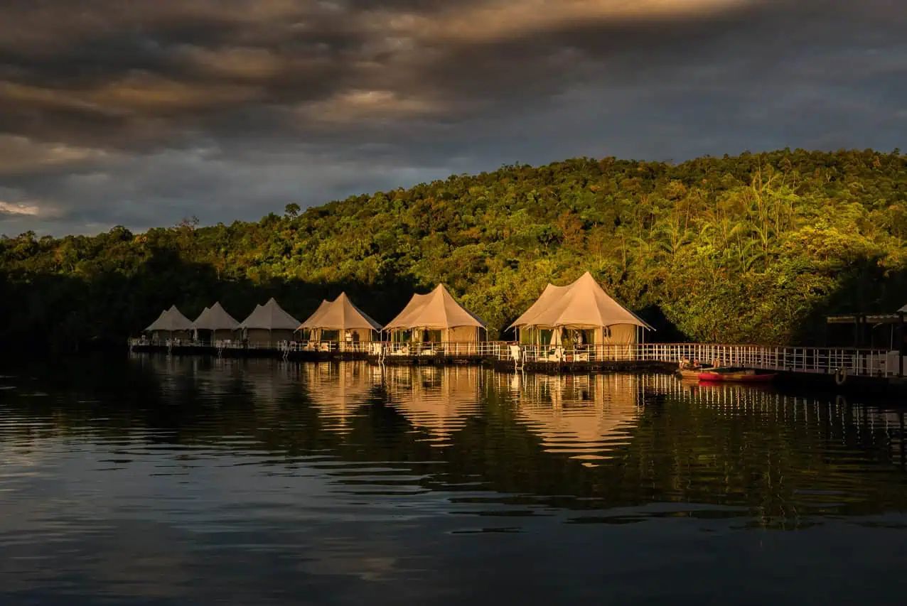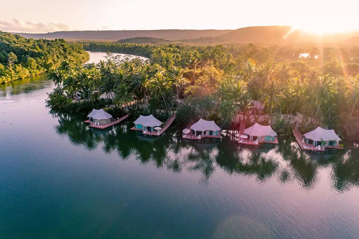 Tucked along a scenic bend of the Tatai River in western Cambodia, Canvas & Orchids Retreat is a boutique eco-lodge offering a unique glamping experience. With eight floating tents and five island tents, the retreat combines luxury and sustainability. Each tent features en-suite bathrooms, locally crafted furniture, and modern comforts like TV, minibar, and in-room safe. Floating tents suit couples or small groups, while two-bedroom island tents are ideal for families. Designed with minimal environmental impact, the retreat supports and employs members of the local community.